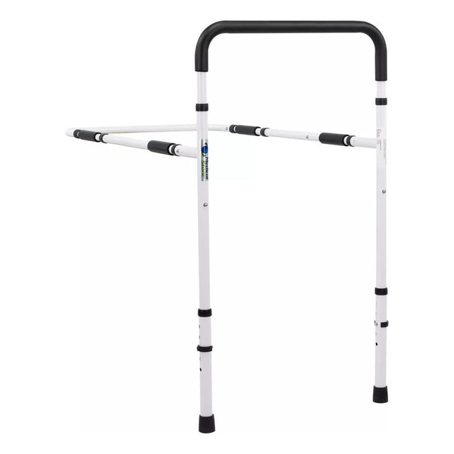 Barandal de seguridad ajustable para cama, fácil de montar y con empuñadura de espuma, ideal para brindar apoyo y seguridad en el descanso.